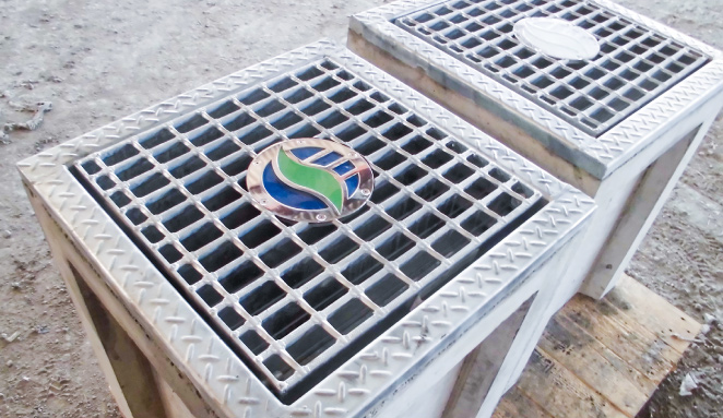 グレーチングを上げるのが重いなどの現場の声から『110°開閉+2点ボルト固定』を標準としました。