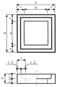 | 呼び名 | a(mm) | b(mm) | h(mm) | h1(mm) | h2(mm) | t(mm) | t1(mm) | t2(mm) | 重量(kg) |