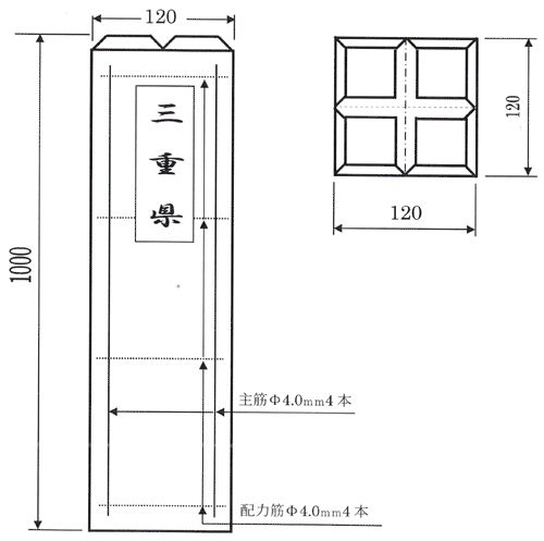 | 三重県境界杭 | 120 | 120 | 1000 | Φ4.00 | 4 | Φ4.00 | 4 | 34 |