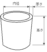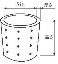 | 呼び名 | 内径(mm) | 厚さ(mm) | 高さ(mm) | 集水穴 (個数) |