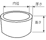 | 呼び名 | 内径(mm) | 厚さ(mm) | 高さ(mm) | 重量(kg) |
